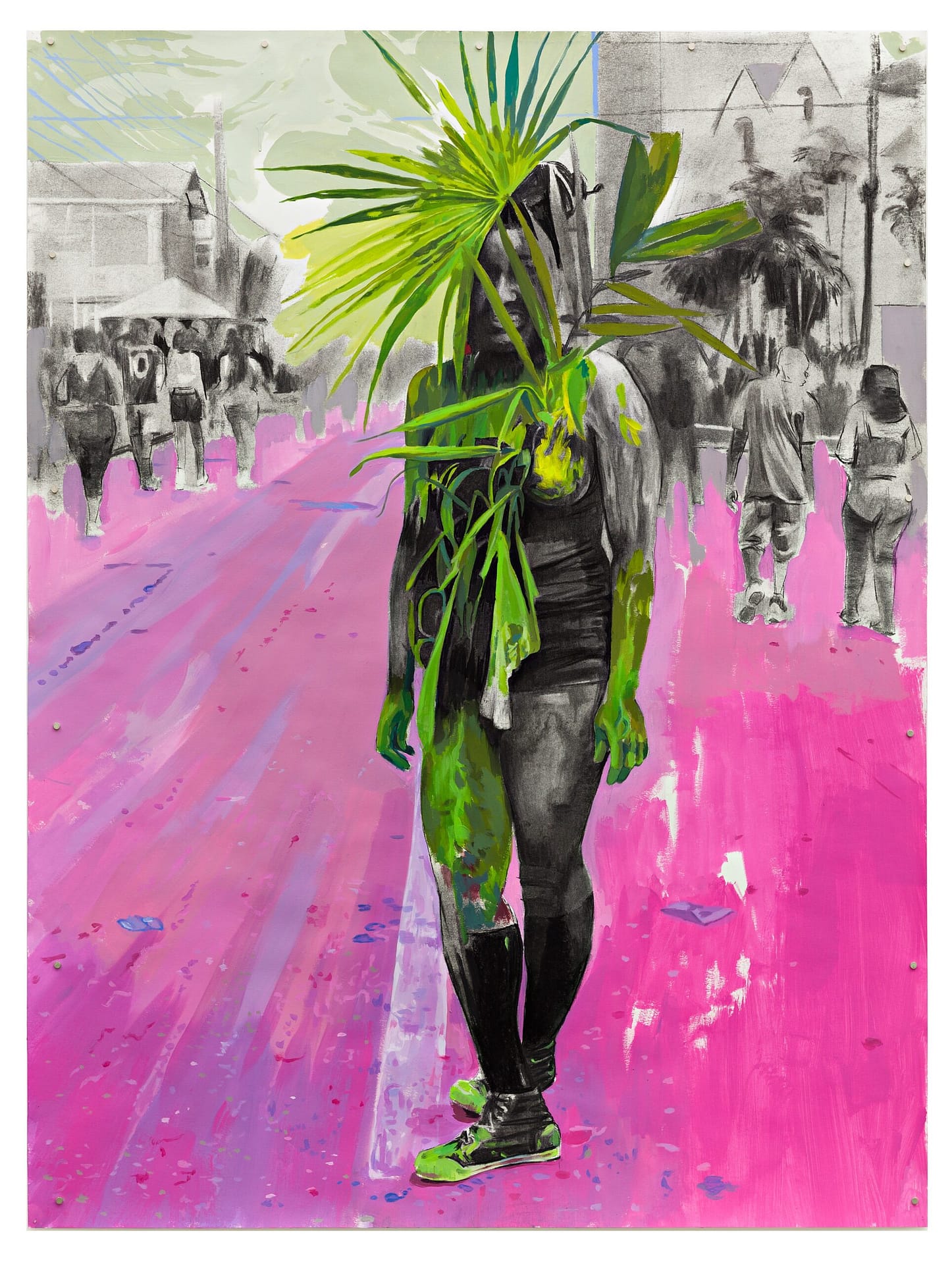Whyte: Exactly. But it wasn’t until experiencing it in Miami, and multiple times in New York, that it kind of shifted. It felt on one hand like a complete liberation to be in a mass gathering of Caribbean people, and I was also fascinated by the clash of different myths around masquerading and how there was a slippage in legibility that was happening. So, I could understand certain things, but only from my Jamaican perspective, and vice versa and I viewed it as fertile ground to create my own set of mythologies that I would juxtapose to these more readable works on resistance.
