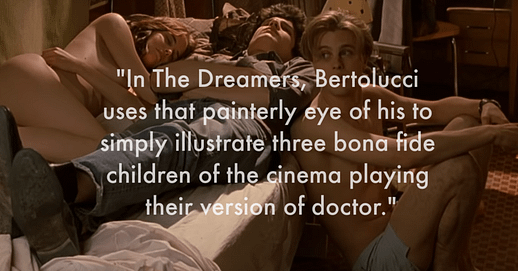 And yet, the hypocrisy of their escapades is that the rebellion and the revolution are in fact happening outside their steamed-up windows—in the wide world that exists beyond the movie screens and celluloid dreams that have them drunk on fantasy. They are their very own Band of Outsiders, and in one of the most memorable scenes of The Dreamers, Bertolucci has them recreate the race through the Louvre made memorable in Jean-Luc Godard’s Bande à Part. But as the escapist allure of their indoor revolution is shattered (quite literally when a protester’s stone is hurled through an apartment window), Bertolucci’s final stroke is releasing Matthew, Isabelle, and Theo back into the wild, leaving the audience to wonder how much more innocence they have left to lose.