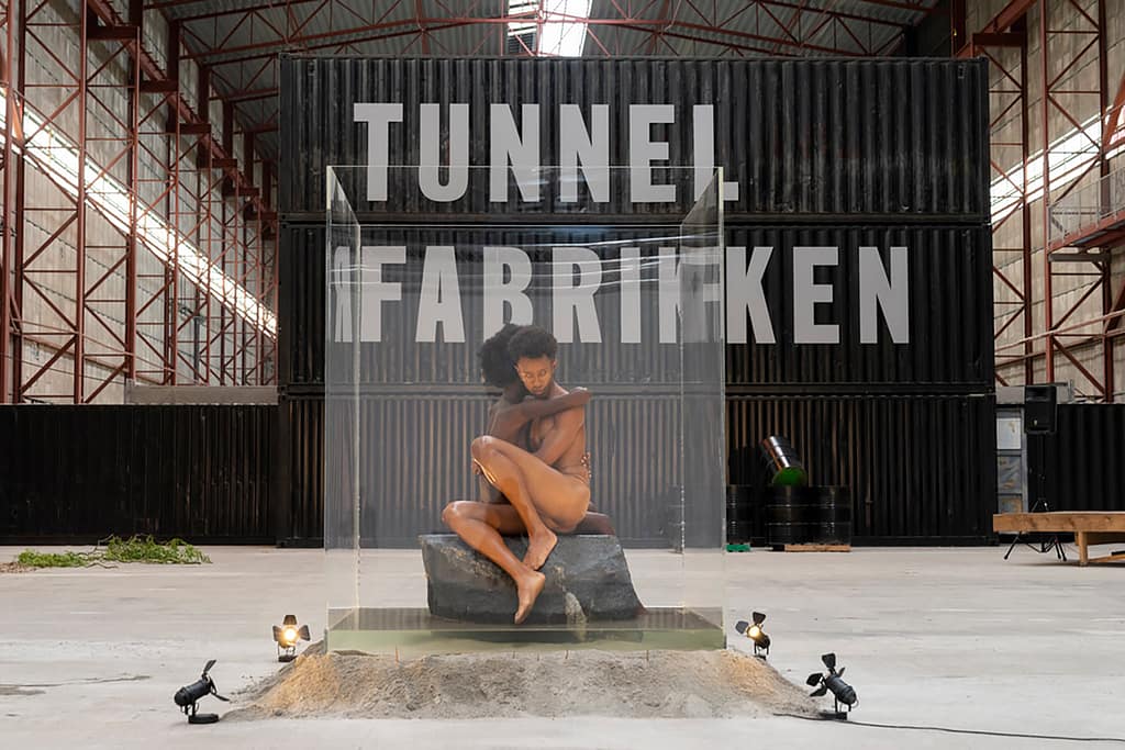 In fairy tales, people are turned into inanimate objects against their will, magicked into statues, or put to sleep for a hundred years, until set free by a prince’s kiss. The performance artist and sculptor Miles Greenberg wills himself into states of suspended time, feats of endurance that test his body, pushing against his physical and mental limitations. As time passes his body may begin to buckle under the strain, a living sculpture that invites us to contemplate vulnerability, suffering, objectification, desire. A recent piece, “Étude Pour Sébastien,” involved piercing his body with arrows, and then posing for five hours in the Louvre’s spectacular Cour Marly, filled with 17th and 18th century sculptures, his Black body a striking counterpart to the white marble figures around him. For “The Embrace” (2020) at Copenhagen’s Enter Art Fair, he sat on a rock, Little Mermaid-like, in a glass cube embracing his collaborator, Sall Lam Torro, for 21 hours. For “ Oysterknife,” also from 2020, he walked on a conveyor belt for 24 hours without pause, an homage in part to the pioneering performance artist Senga Nengudi, a lodestar for Greenberg. Another influence and friend is Marina Abramovic´. Like her, he has turned his body into a canvas for his art, synthesizing sculpture and theater in performances that feel as if they have no particular beginning and no end. Here Greenberg and the writer and model Amber Later reflect on video games, fighting through pain, and Saint Sebastian as the original twink.