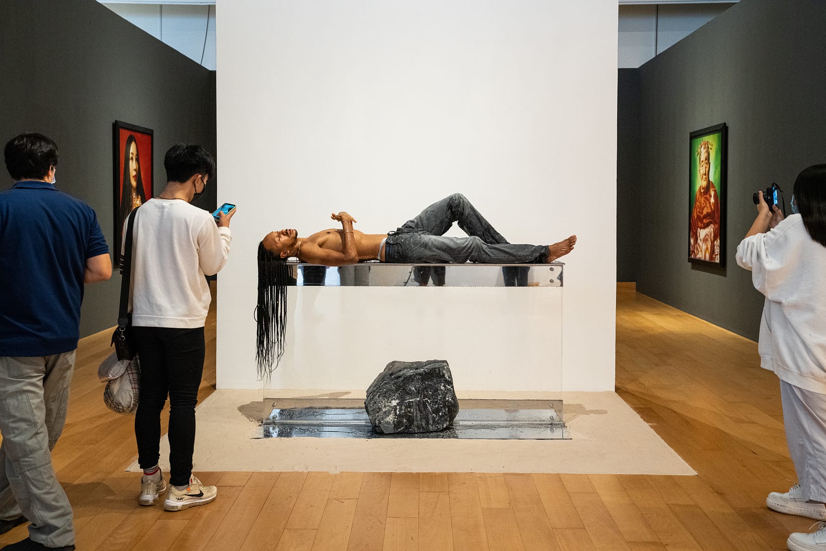 In fairy tales, people are turned into inanimate objects against their will, magicked into statues, or put to sleep for a hundred years, until set free by a prince’s kiss. The performance artist and sculptor Miles Greenberg wills himself into states of suspended time, feats of endurance that test his body, pushing against his physical and mental limitations. As time passes his body may begin to buckle under the strain, a living sculpture that invites us to contemplate vulnerability, suffering, objectification, desire. A recent piece, “Étude Pour Sébastien,” involved piercing his body with arrows, and then posing for five hours in the Louvre’s spectacular Cour Marly, filled with 17th and 18th century sculptures, his Black body a striking counterpart to the white marble figures around him. For “The Embrace” (2020) at Copenhagen’s Enter Art Fair, he sat on a rock, Little Mermaid-like, in a glass cube embracing his collaborator, Sall Lam Torro, for 21 hours. For “ Oysterknife,” also from 2020, he walked on a conveyor belt for 24 hours without pause, an homage in part to the pioneering performance artist Senga Nengudi, a lodestar for Greenberg. Another influence and friend is Marina Abramovic´. Like her, he has turned his body into a canvas for his art, synthesizing sculpture and theater in performances that feel as if they have no particular beginning and no end. Here Greenberg and the writer and model Amber Later reflect on video games, fighting through pain, and Saint Sebastian as the original twink.