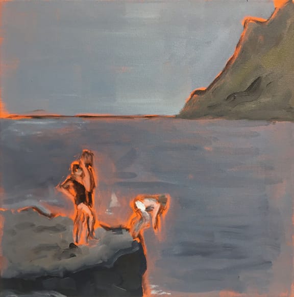 Edo Dives, 2019. Oil and acrylic on canvas. Courtesy of Daniel Cooney Fine Art